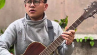 Азиат виртуозно играет на гитаре, н...