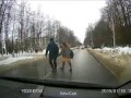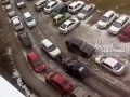 Девушка бьет щеткой чужое авто