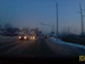 Байкер едет по трассе в лютый мороз