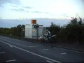 Прогулка по мосту стоя на мотоцикле