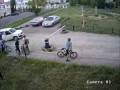 Мужчина разбивает велосипед школьни...