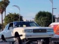 Шедший на буксире за пикапом красны...