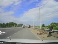 Наезд на железный прут при скорости...