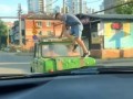 Мужик объехал пробку, отодвинув дор...