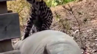 Оцелот пытается охотиться на свинью...