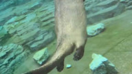 Выдра играет с камешком