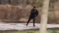 Спас бобкат на трамвайных путях