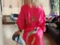 Девушка показывает, как надевает пр...