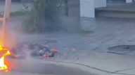 Капля воды падает в воду, снято выс...