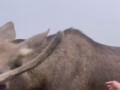 Cheetah licks photographer
