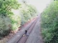 Пьяный велосипедист на жд-путях
