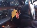 В говно пьяный выпал из машины.