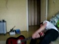 Чувак разбивает об голову гитару