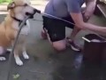 Pit bull is terrified of pineapple