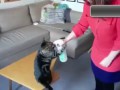 Кот массажирует мопса