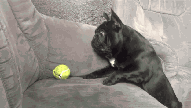 бульдог и мячик
