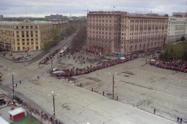 Челябинск 1997 9 мая пл. Революцции начало парада