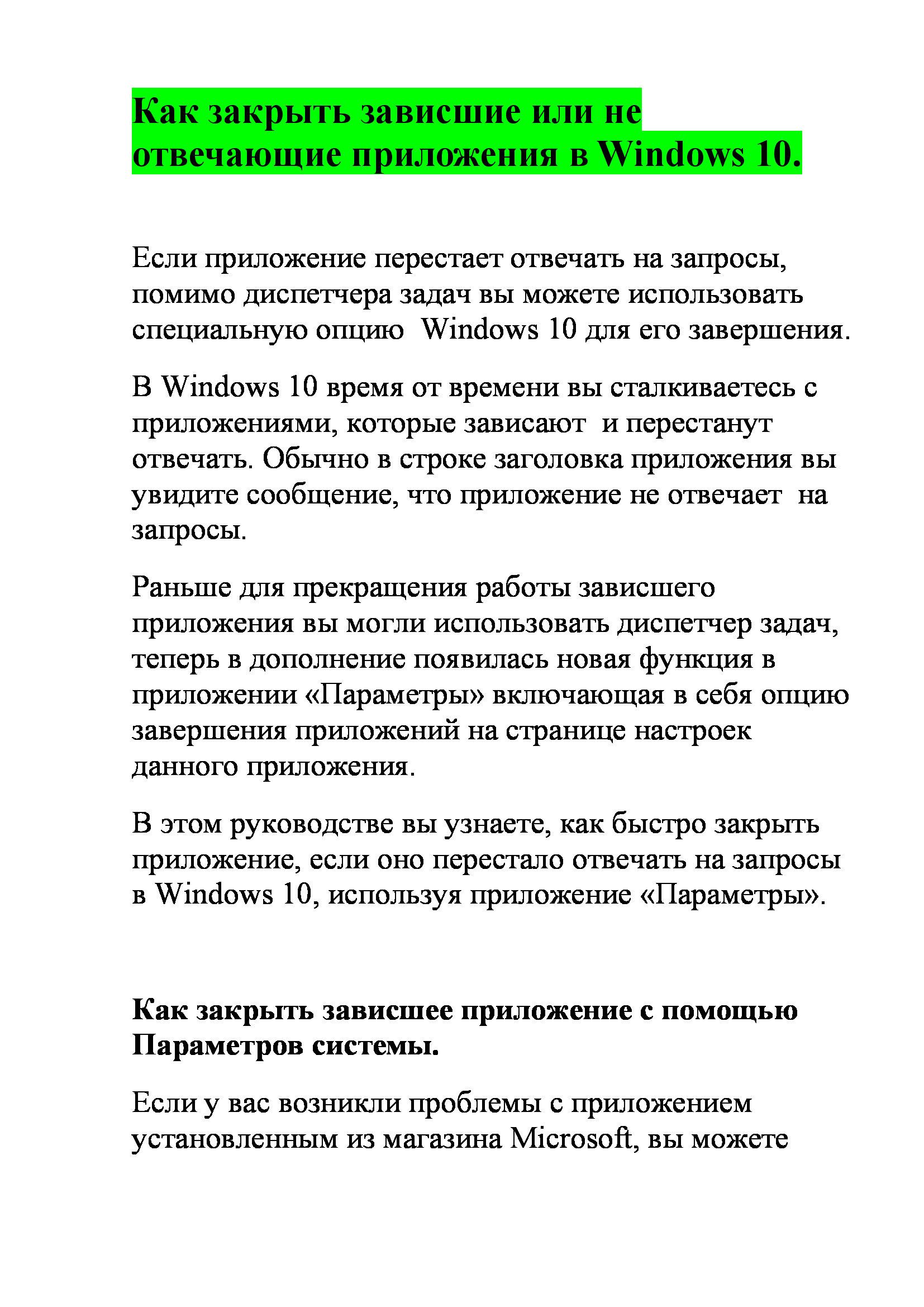 закрыть зависшие или не отвечающие приложения в Windows 10
