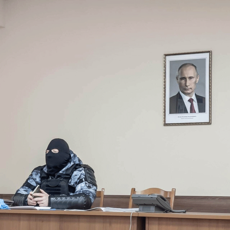 Омоновец на фоне Путина