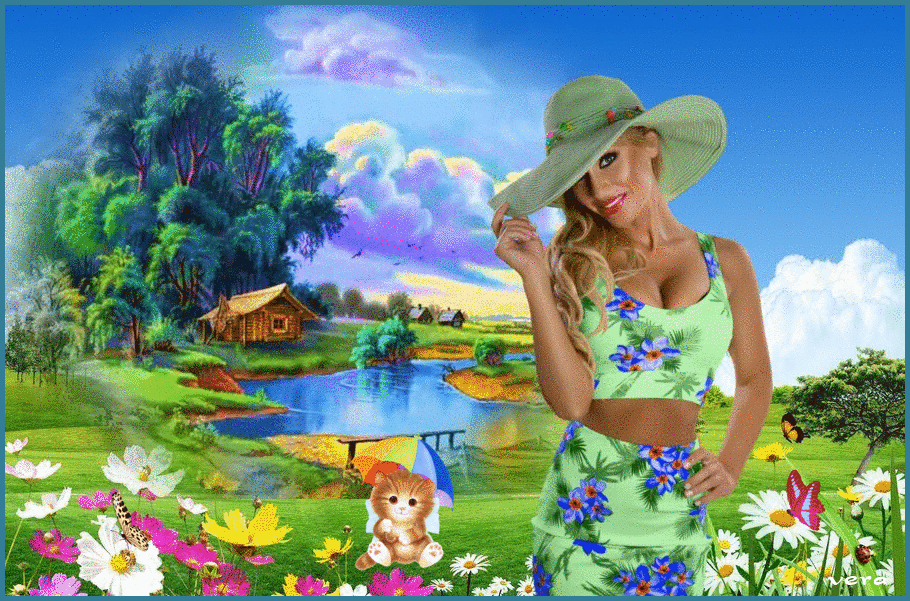, Девушка,река, дом