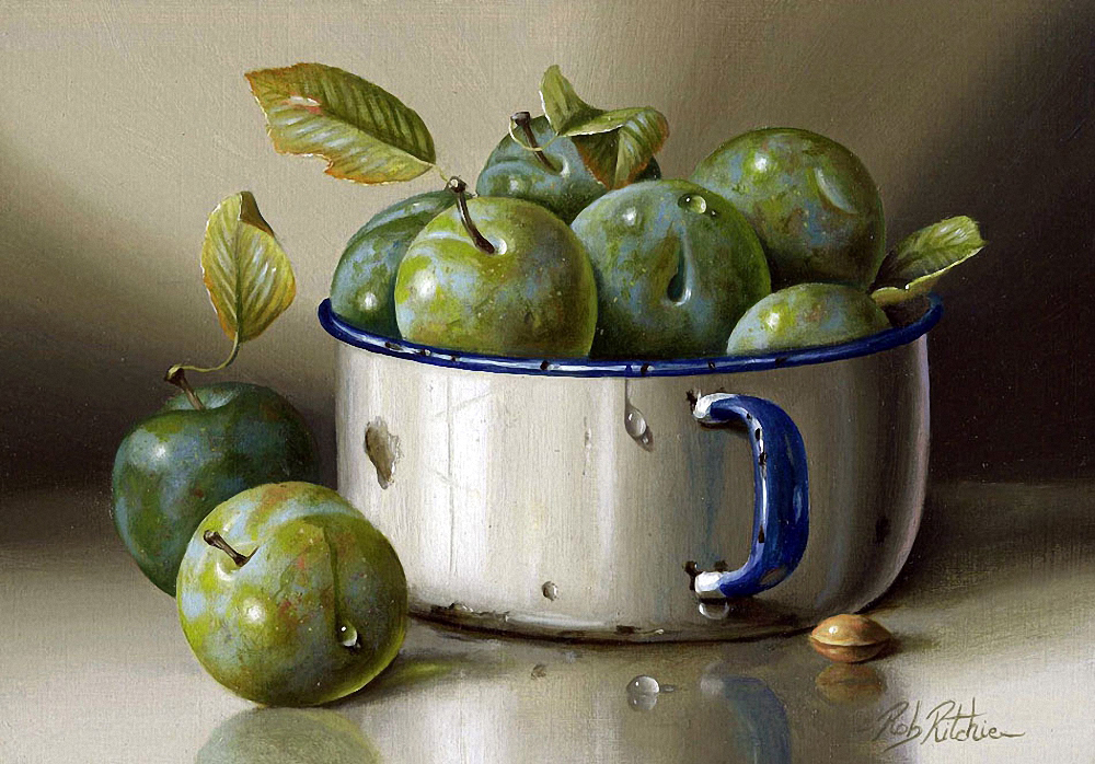 Greengages and Old Enamel Mug