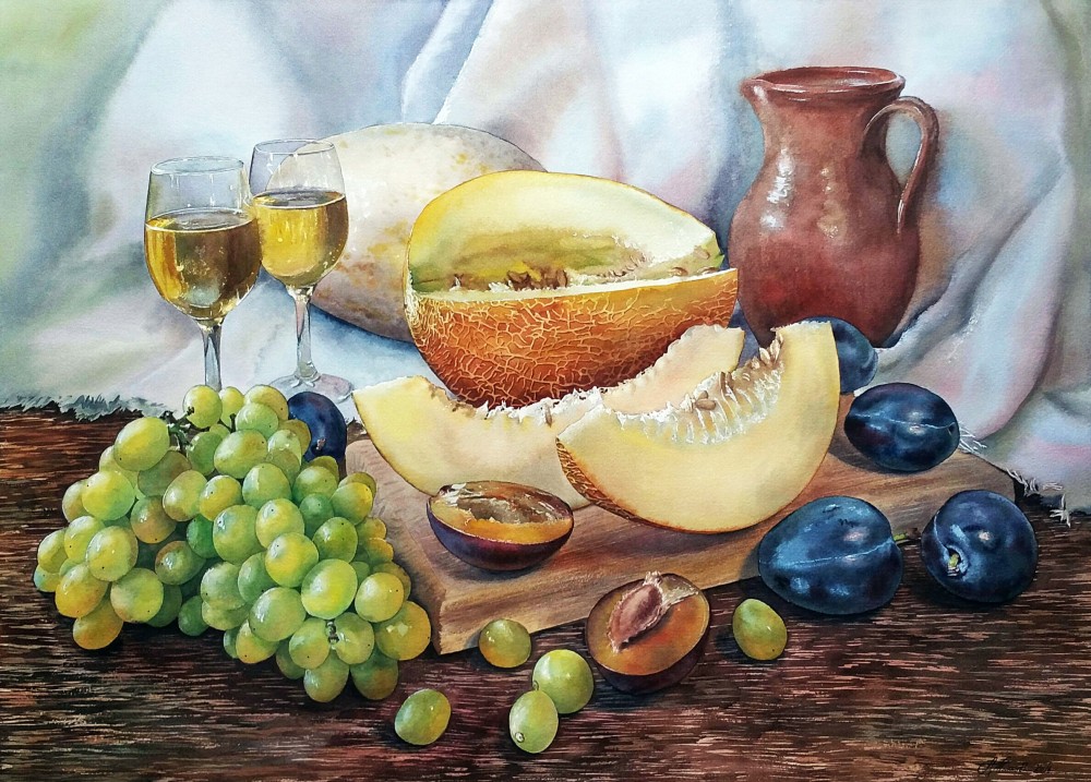 с дыней и виноградом