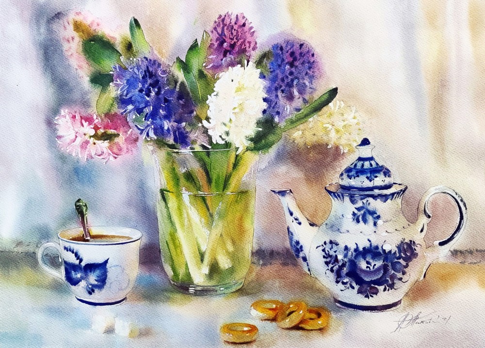 с чайником гжель
