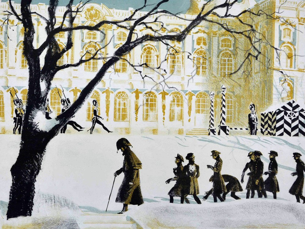 .З.Иткин. Прогулка лицеистов. Цветная литография 1967 (1)