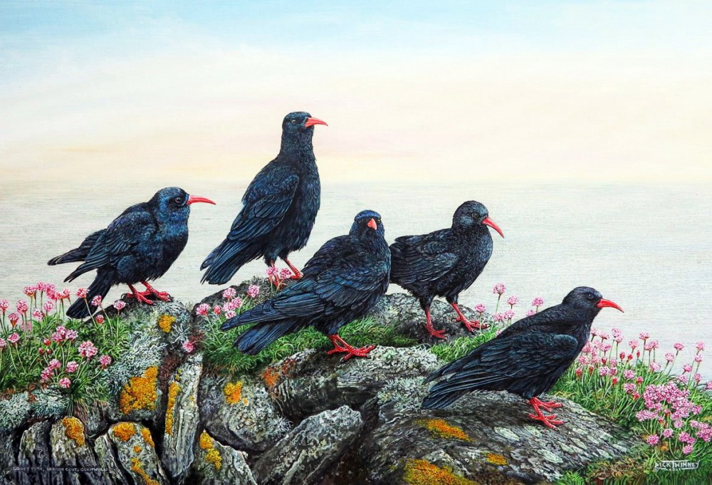 Choughs on a Cornich Hedge