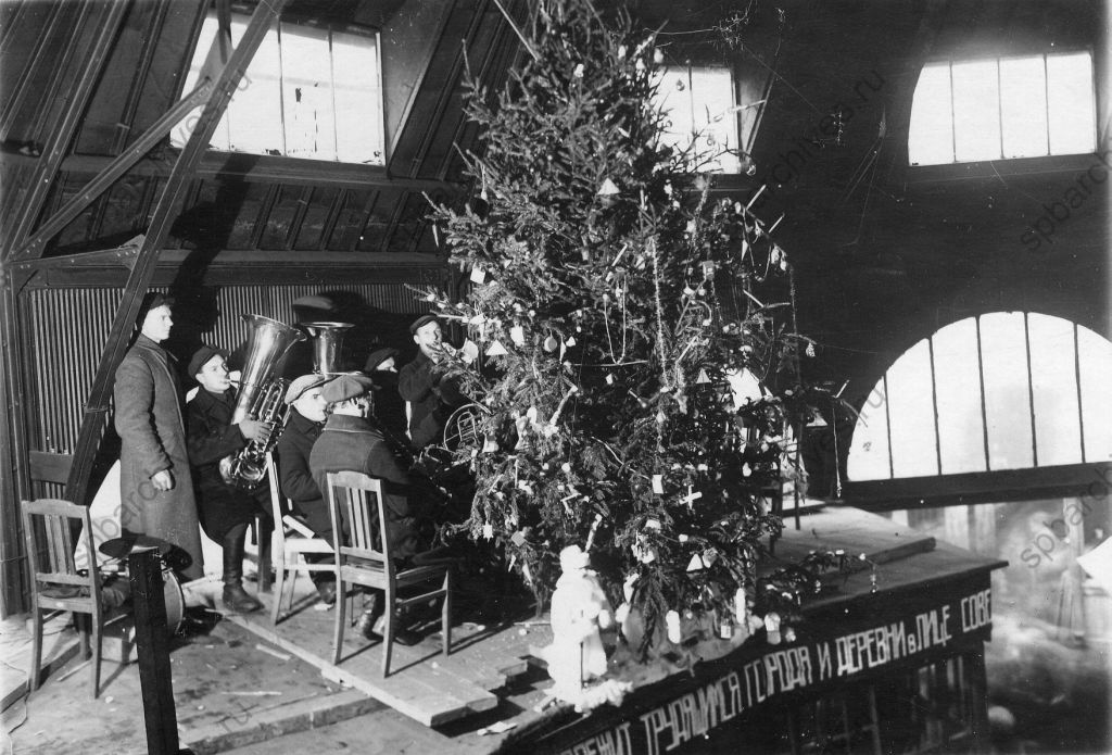 17.Духовой оркестр у новогодней елки в помещении Кузнеч