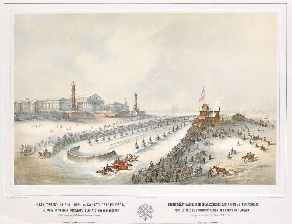 троек на реке Неве в Санкт-Петербурге на приз управлен