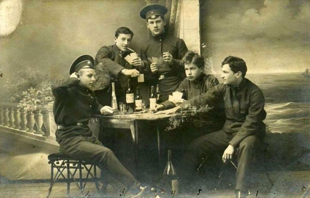 5. Гимназисты позируют в фотоателье с атрибутами взрос?