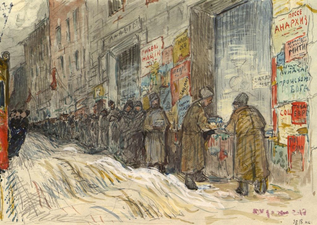 11.Неизвестный художник Очередь на улице Петрограда, 1918