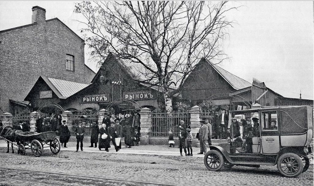 9.«Белый таксомотор» Charron около Сампсониевского рынка,