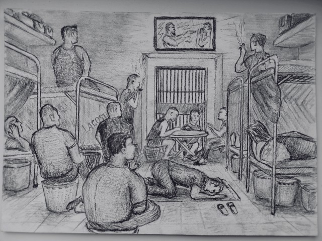 Рисунок по памяти, камера тюрьмы "Одна", Тунис.