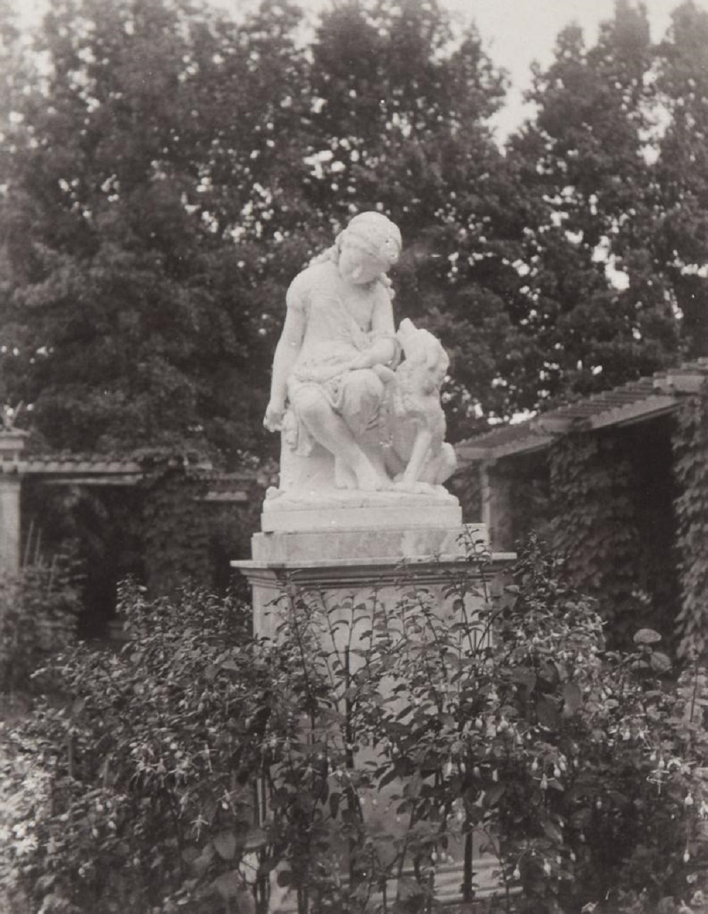 43.Статуя молодой девушки и собаки в саду. Фото 1900-х гг.