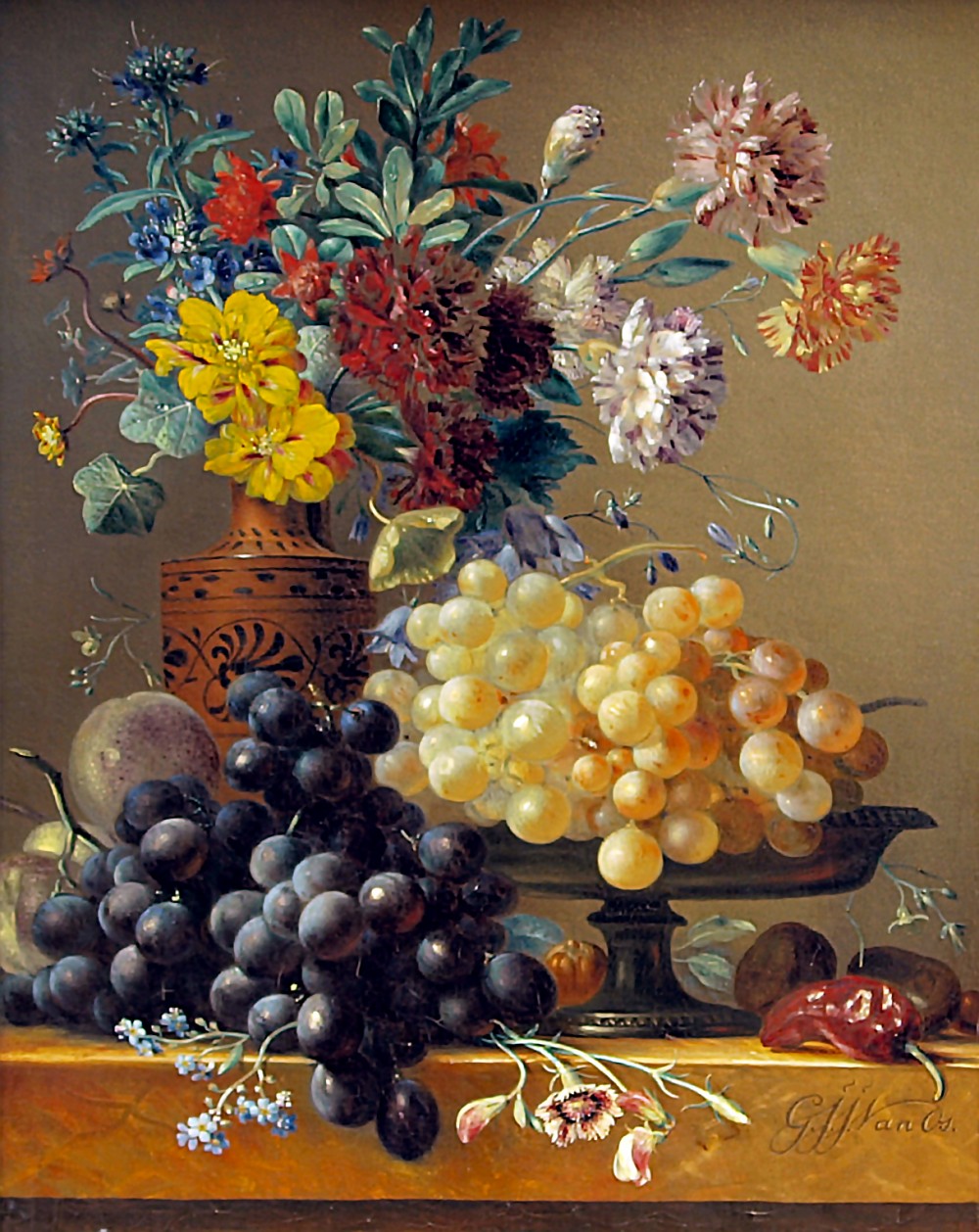 19GeorgiusJacobusJohannesvanOs178261Still life with fruits and flowers in a Greek vase,