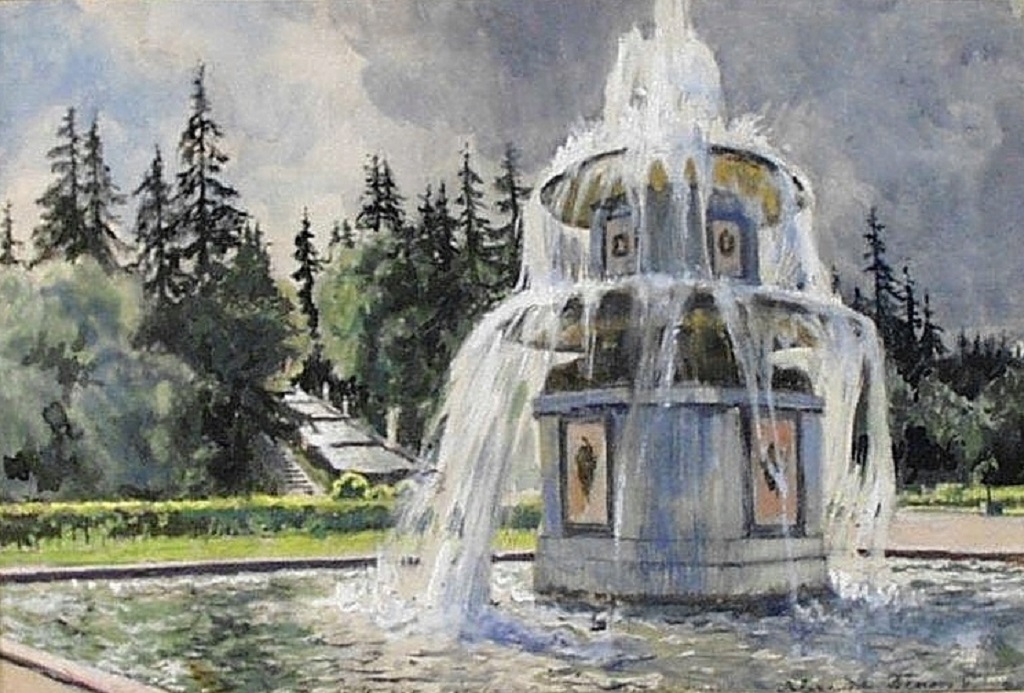 Бенуа Петергоф. Фонтаны у Шахматной горы