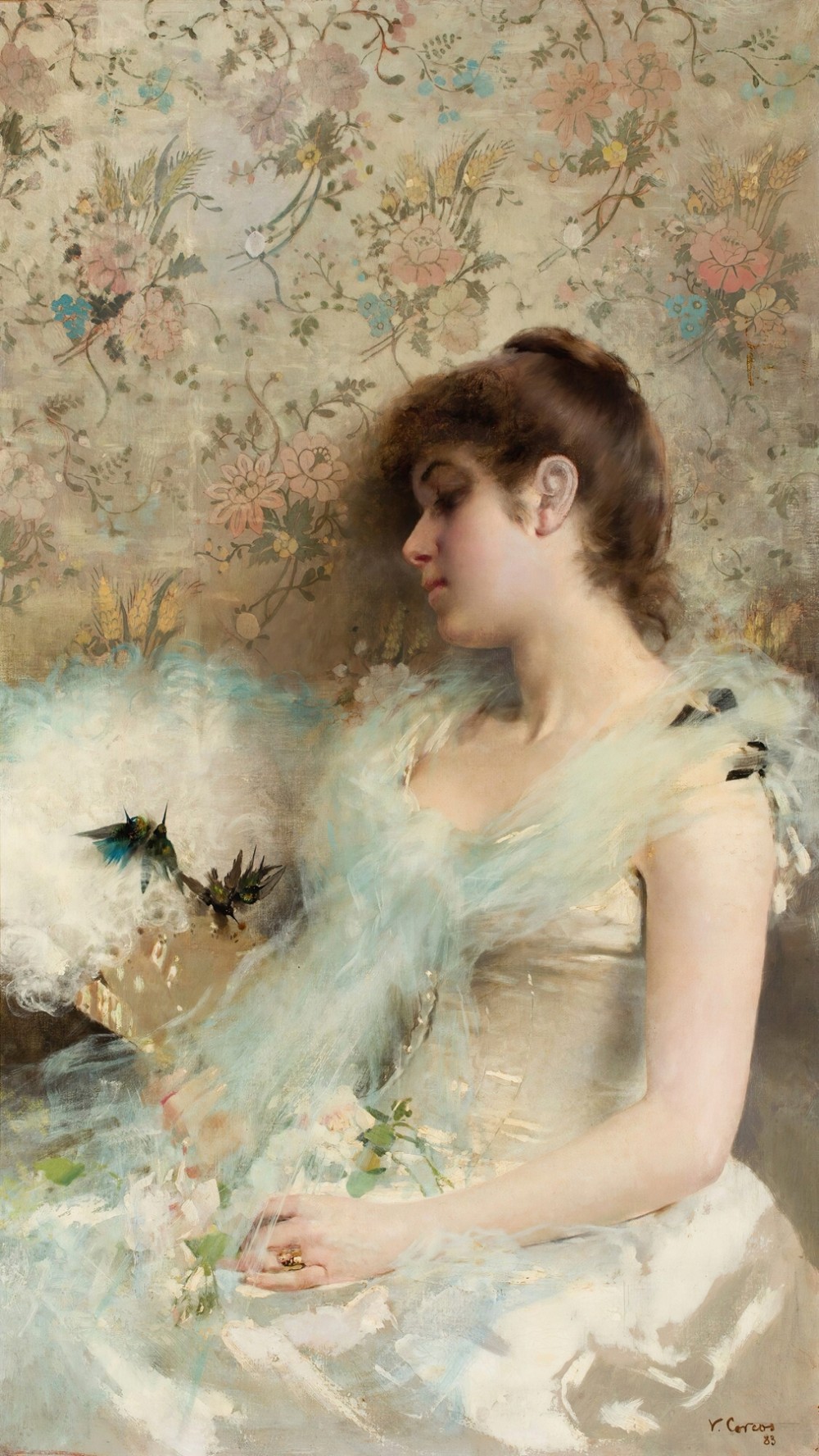 43VittorioMatteoCorcos(Italian, 1859 – 1933)Girl with hummingbirds (1883),