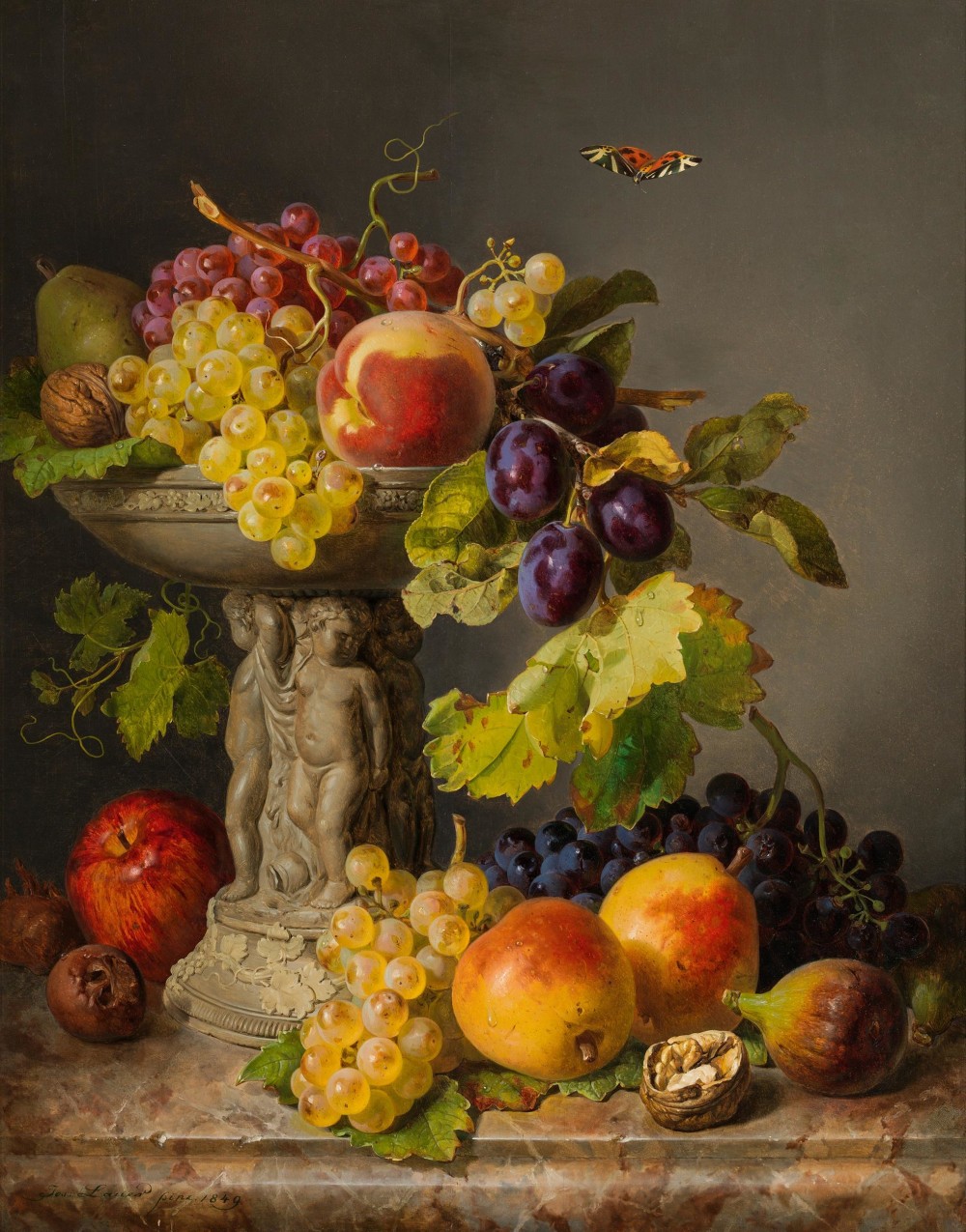 8JosefLauer181881Fruit still life with butterfly1849
