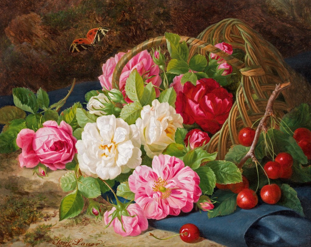 → 34JosefLauer181881Forest floor still life with roses&cherries