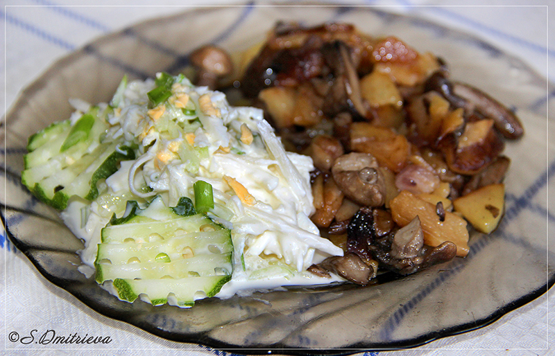 из кольраби и жареная картошка с грибами