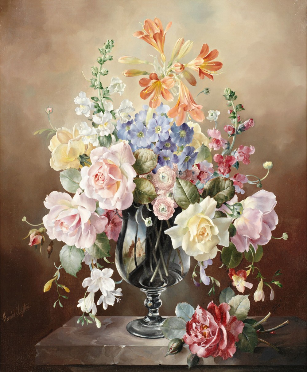 15HaroldClaytonBr189679Still life of Roses, Antheritis and Freesias,