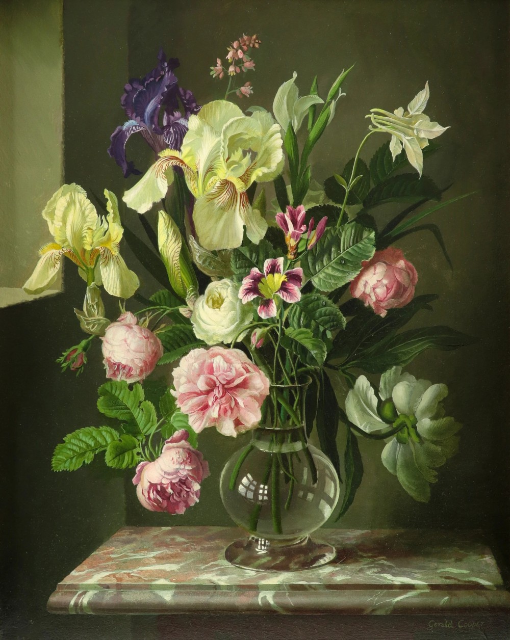 → 1GeraldA.CooperStill life with flowers in a glass vase on a marble ledge0