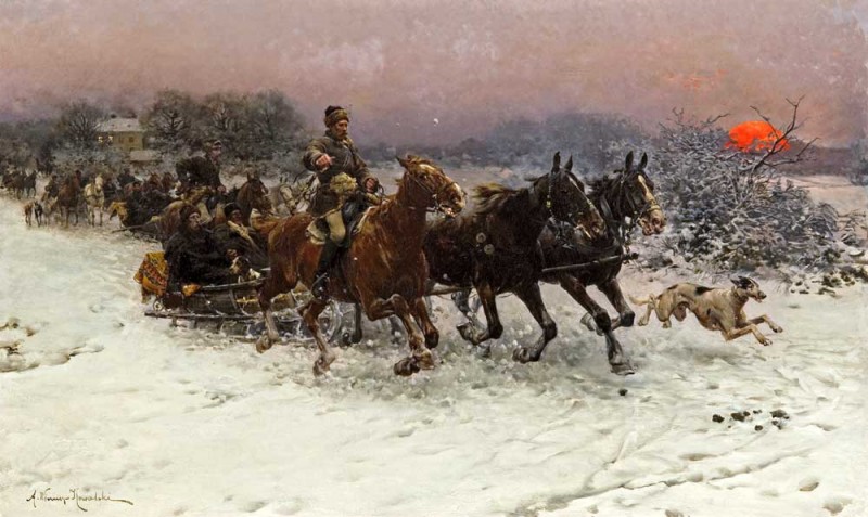 Alfred Wierusz-Kowalski » Evening-Sleigh