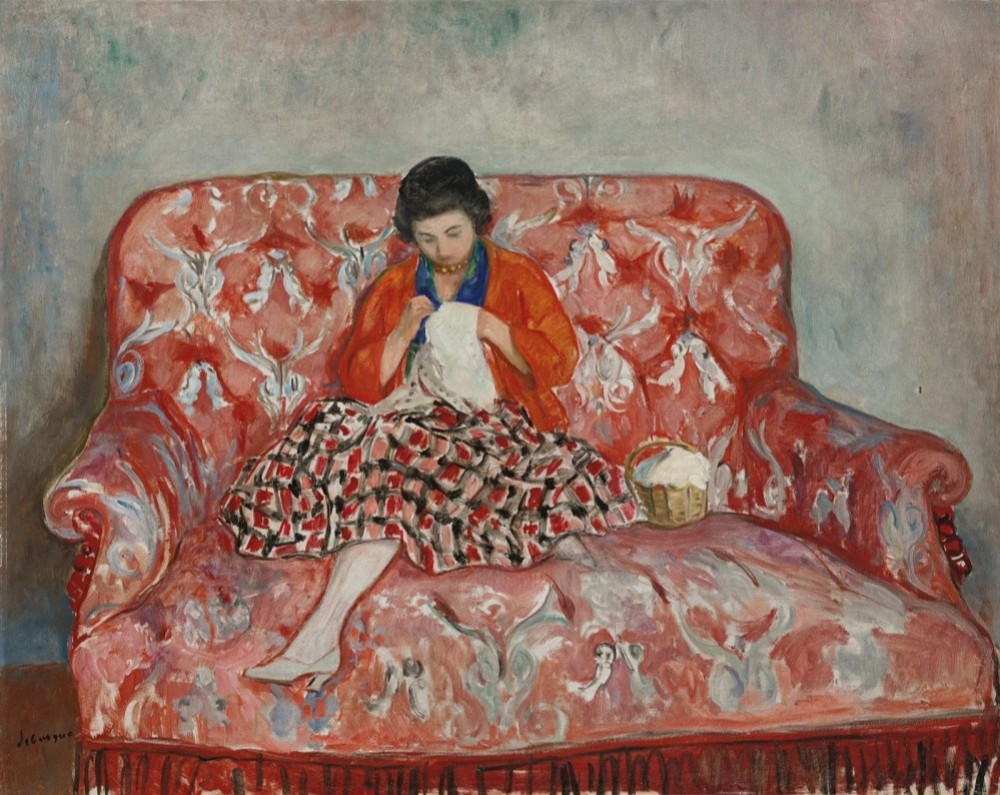 , шьющая на диване» - Анри Лебаск
